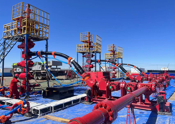 該系列產品在陸地油氣特別是頁巖油氣等領域應用效果優異,產品特點包括:大口徑、耐高壓、耐高溫、耐腐蝕。整體式硫化接頭發明專利技術,保障軟管可以在高溫、高腐蝕、高壓力的流體輸送時的安全性、密封性、抗拔脫性。